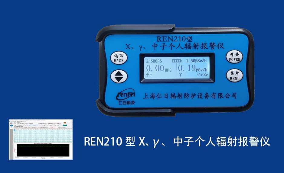 REN210 個(gè)人計(jì)量報(bào)警儀REN210型X、γ、中子個(gè)人輻射報(bào)警儀內(nèi)置SiPM和鋰玻璃晶體組成中子探測器儀器,采用反照率方式探測中子射線,同時(shí)也能探測X、γ射線。因此它可同事監(jiān)檢測X、γ、中子三種射線。能顯示工作場所的劑量當(dāng)量率和累積劑量,更換電池時(shí),日期及累積數(shù)據(jù)能永久保存。可選配RenRiPersonal個(gè)人劑量管理軟件,該軟件可存儲(chǔ)多個(gè)人的歷史數(shù)據(jù),能記錄日累積、月累積、年累積、輻照時(shí)長、計(jì)算平均劑量率、扣除或不扣除本底輻射,且以文字和圖譜的方式展現(xiàn)數(shù)據(jù)。廣泛應(yīng)用于環(huán)保、化工、水泥、煤礦、土木工程、石油、醫(yī)院、疾控、進(jìn)出口商檢、核電、加速器、機(jī)場、中子源庫和其他安檢、邊境控制海關(guān)檢測等領(lǐng)域中的工作人員進(jìn)行個(gè)人安全防護(hù)監(jiān)測及放射性提示。